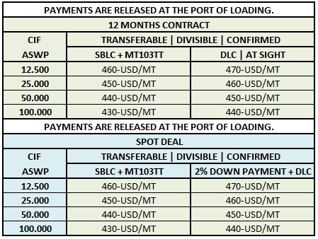 - After loading is completed, the buyer pays 100% against the shipping documents via mt103tt at the port of loading within 72 hours,.